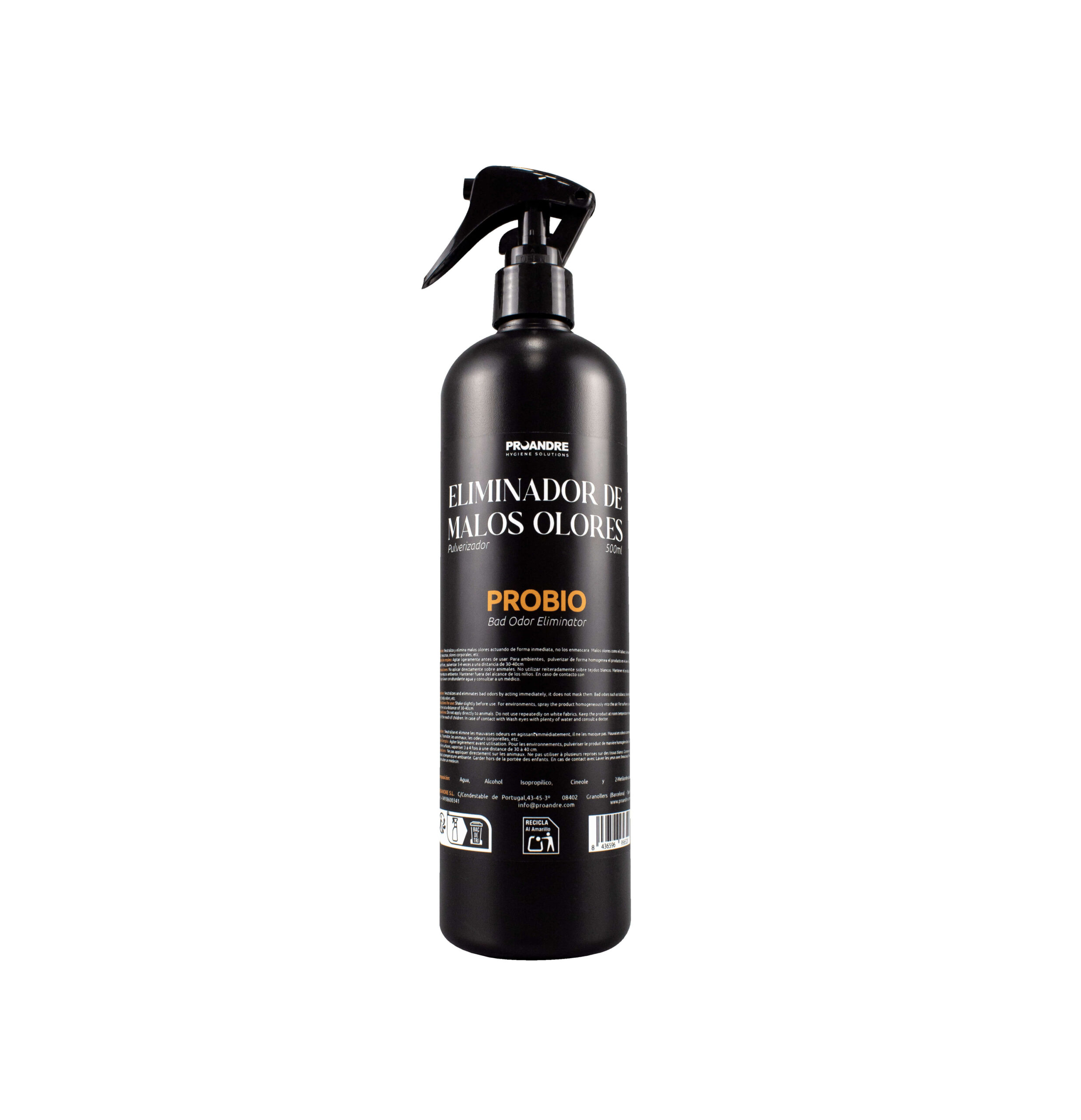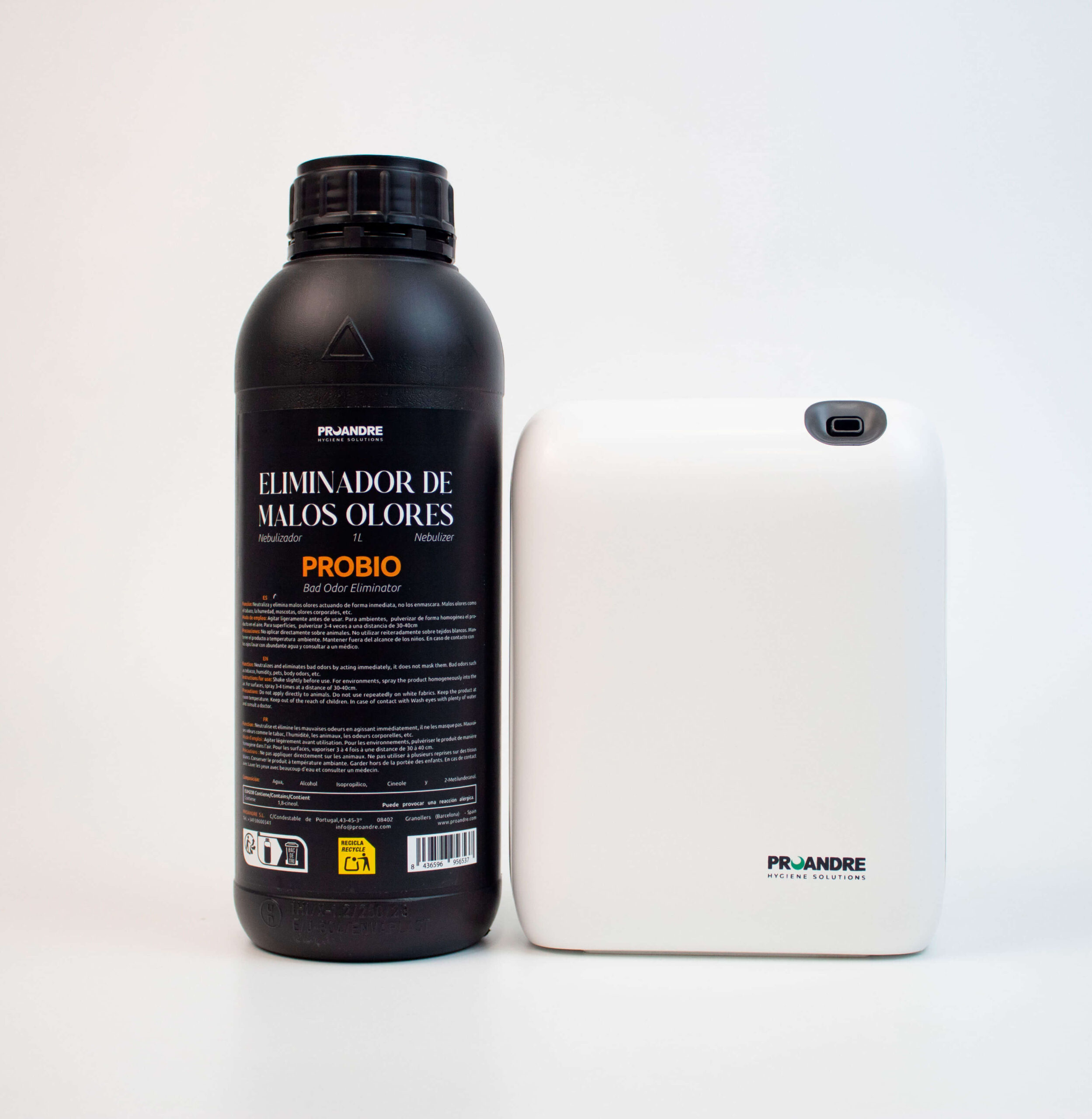 The spray format allows applications in the environment and on surfaces, ideal for eliminating odour-causing particles both in the air and at their source.