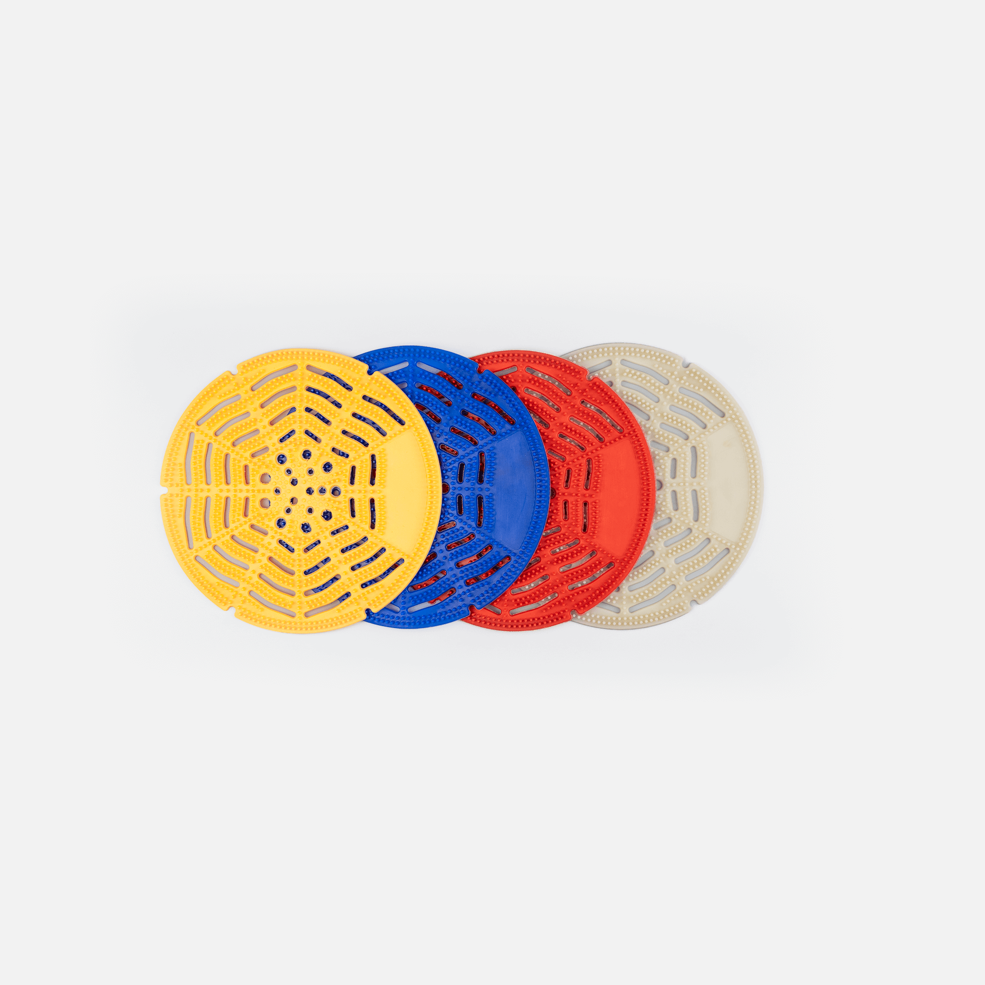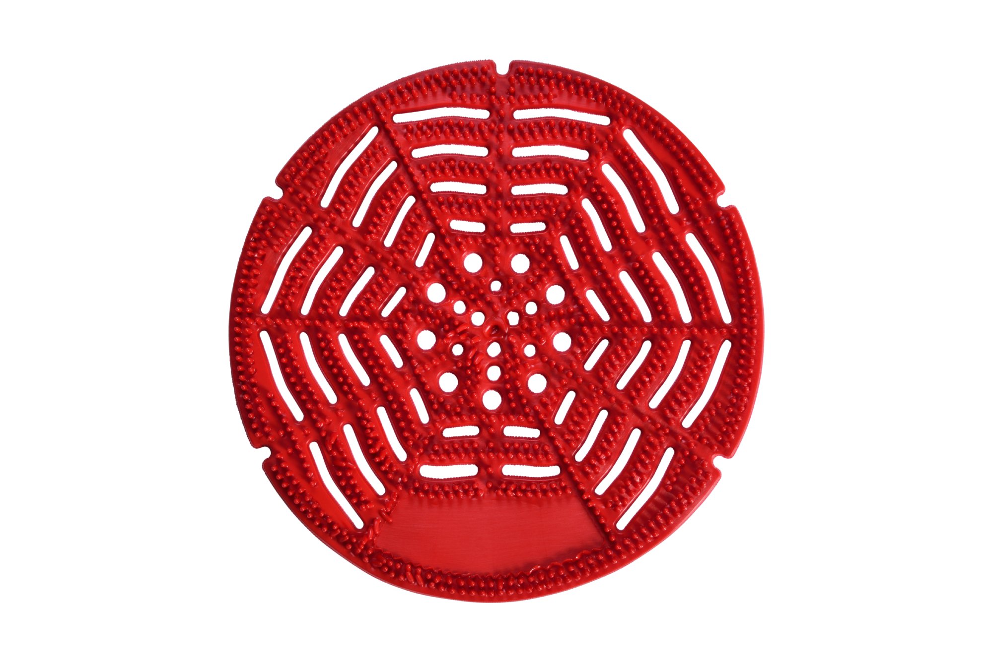 Ideado para no dejar pasar los cuerpos extraños (colillas, chicles, etc.) que se arrojan a los urinarios, evitando de forma fácil y económica la obstrucción de cañerías y sus consiguientes averías. Evita con eficacia las molestas salpicaduras gracias a su nuevo diseño con punteado. Al mismo tiempo, gracias a los agentes neutralizadores y aromatizantes activos que se le inyectan en el proceso de fabricación, desprende una suave fragancia al contacto con el agua o la orina. De esta forma, absorbe los habituales malos olores propios de los urinarios de pared y funciona como complemento ideal de nuestras propuestas de ambientación.
